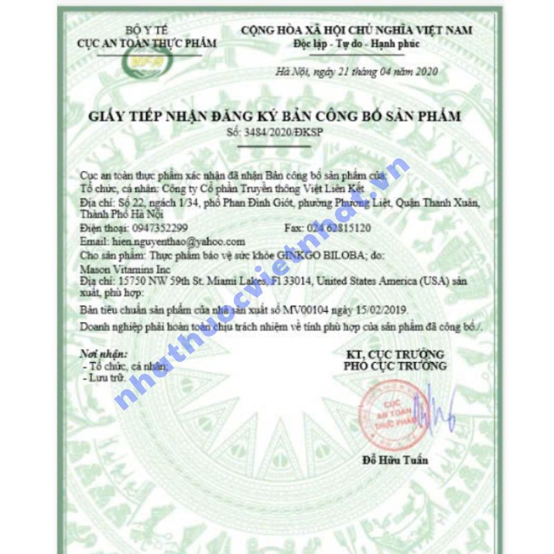 Khi mua sản phẩm bổ sung, người tiêu dùng cần kiểm tra kỹ thông tin pháp lý và xuất xứ để đảm bảo an toàn. GINKGO BILOBA chính hãng đã được cấp: