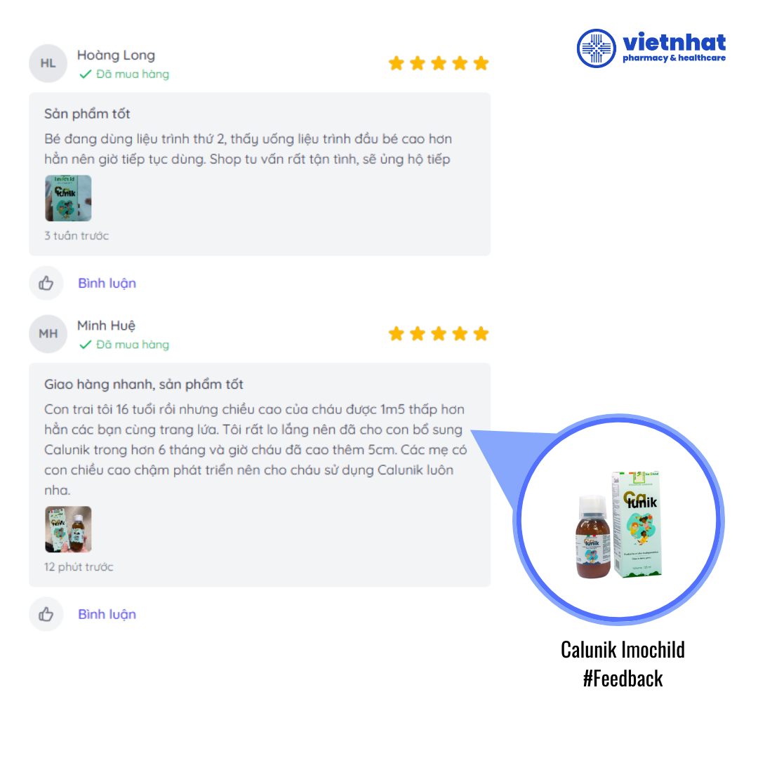 Tuy nhiên, điều quan trọng cần nhớ là Calunik Imochild chỉ là một phần trong chiến lược tổng thể để hỗ trợ sự phát triển của trẻ. Chế độ ăn uống cân bằng và luyện tập thể dục đều đặn vẫn là những yếu tố không thể thiếu.