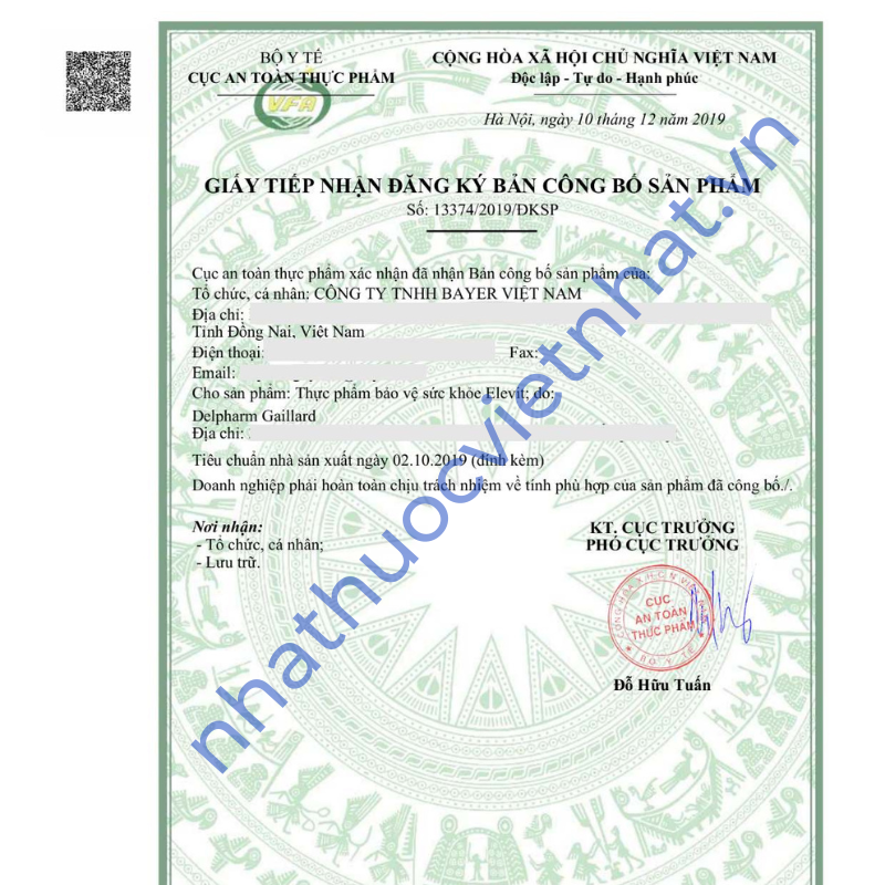 Khi mua sản phẩm bổ sung vitamin tổng hợp cho bà bầu, người tiêu dùng cần kiểm tra kỹ thông tin pháp lý và xuất xứ để đảm bảo an toàn. Elevit chính hãng đã được cấp: