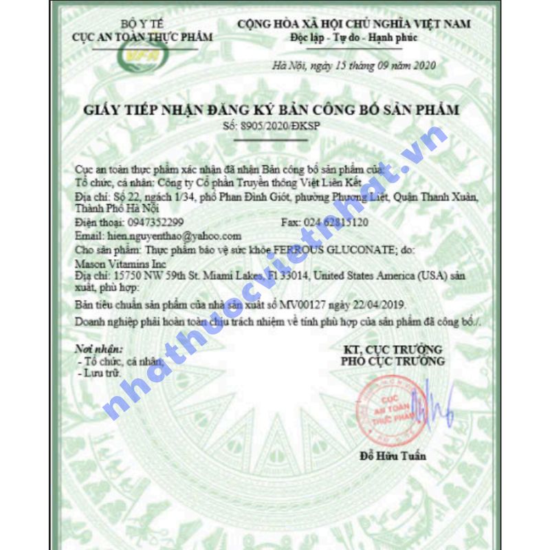Khi mua sản phẩm bổ sung sắt, người tiêu dùng cần kiểm tra kỹ thông tin pháp lý và xuất xứ để đảm bảo an toàn. FERROUS GLUCONATE chính hãng đã được cấp:
