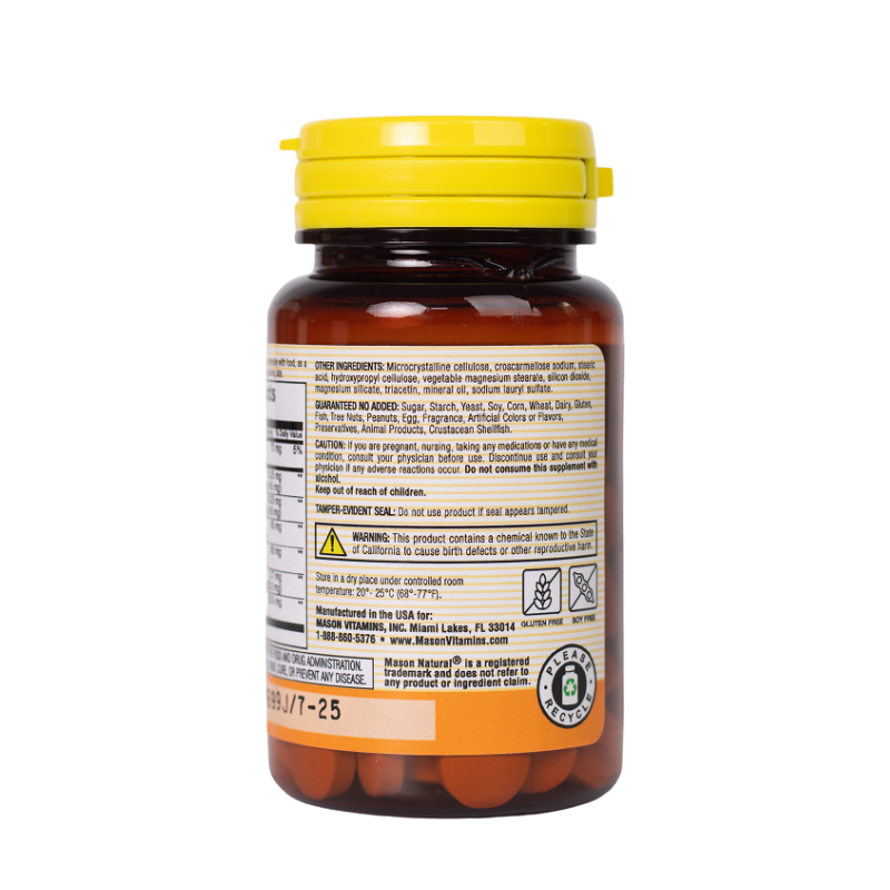 Tất cả các sản phẩm của Mason Natural đều được sản xuất và thử nghiệm tại Hoa Kỳ, với hệ thống máy móc và phòng thí nghiệm hiện đại tuân thủ cGMP và đạt chứng nhận an toàn thực phẩm ASI.