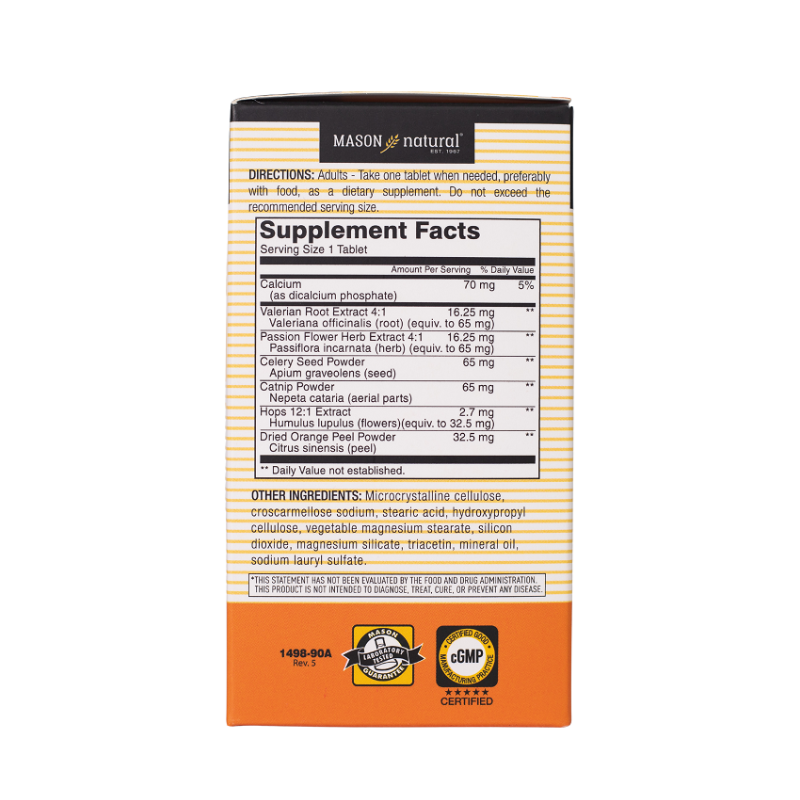 Thành phần của viên uống Mason Natural Relax & Sleep, cải thiện chất lượng giấc ngủ nhập khẩu từ Mỹ