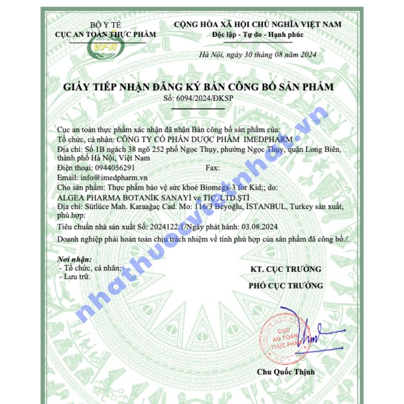 Khi mua sản phẩm bổ sung Omega-3 cho trẻ, phụ huynh cần kiểm tra kỹ thông tin pháp lý và xuất xứ để đảm bảo an toàn. Biomega-3 for Kid chính hãng đã được cấp: