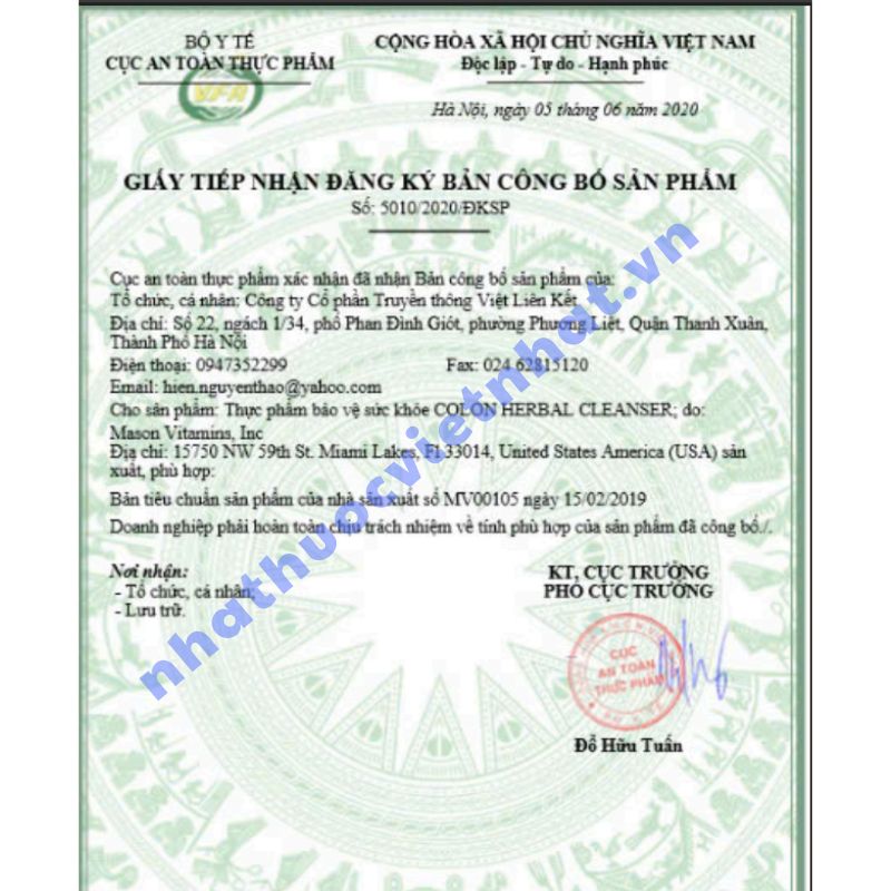 Khi mua sản phẩm bổ sung, người tiêu dùng cần kiểm tra kỹ thông tin pháp lý và xuất xứ để đảm bảo an toàn. COLON HERBAL CLEANSER chính hãng đã được cấp: