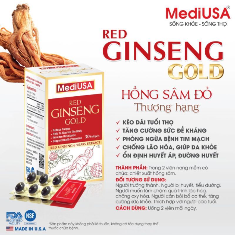 Viên uống Hồng Sâm MediUSA Red Ginseng Gold, lựa chọn tuyệt vời để tăng cường sức khỏe