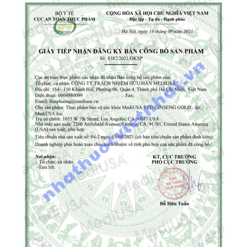 Khi mua sản phẩm bổ sung nhân sâm, người tiêu dùng cần kiểm tra kỹ thông tin pháp lý và xuất xứ để đảm bảo an toàn. MediUSA RED GINSENG GOLD chính hãng đã được cấp: