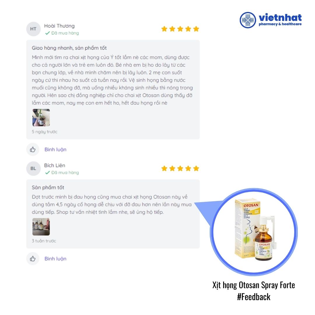 Feedback về Xịt họng Otosan Spray Forte từ khách hàng của Nhà thuốc Việt Nhật